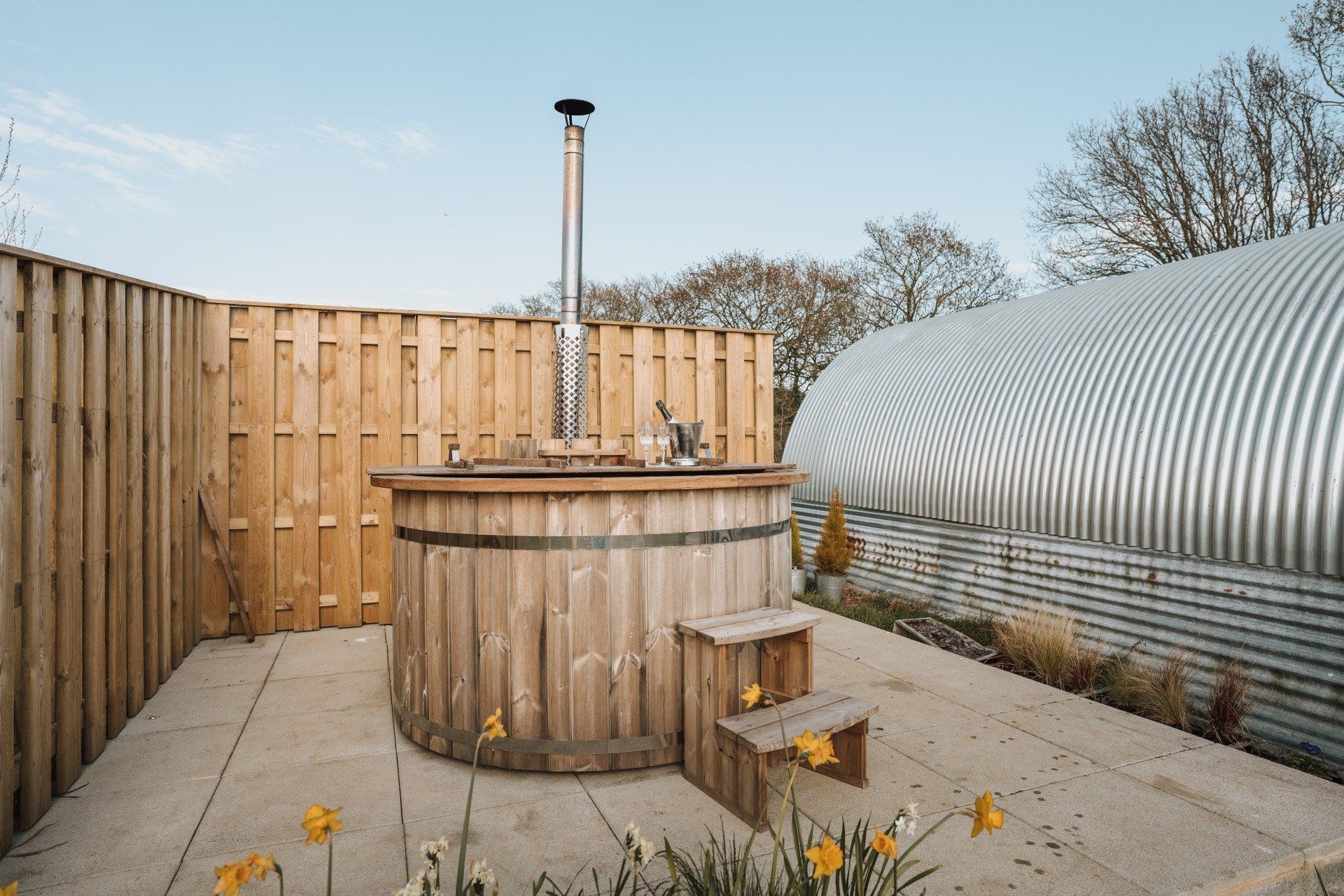 A luxury hamper is provided full of local and home made produce and a bottle of champagne along with all linen, towels, robes and wood for the hot tub and firepit.