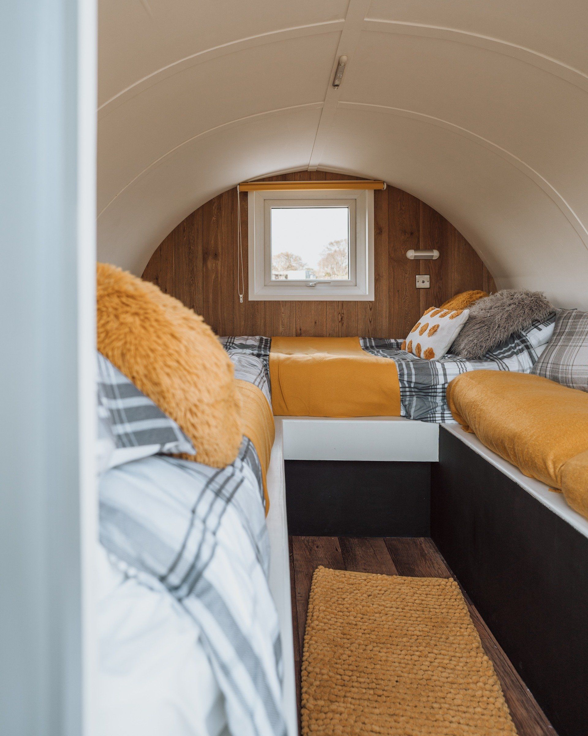 Perfect for children to sleep in to give mum and dad some privacy, our little ark is mobile so can be moved to a couples ark or set along side the family ark to accommodate a larger family. There are up to 3 full length single beds within the mobile ark.
